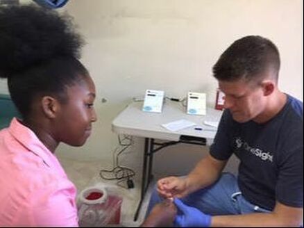 Our clients - Mission of Sight - helping residents in Jamaica. You can see our distinctive blue BloodChek Medical label on the LDX machines in the background!